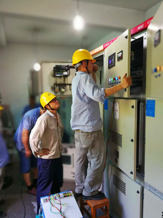 15日一早,廠家和電力公司技術(shù)人員帶著相應(yīng)設(shè)備和工具,先切斷南北配電房主電纜,改為發(fā)電機(jī)供電,同時(shí)為了做到有備無患,中心還請(qǐng)清障施救人員幫忙將移動(dòng)發(fā)電機(jī)拉至隧道外廣場(chǎng)備用,以保證隧道正常照明及運(yùn)營(yíng)。配電房?jī)?nèi),20多名技術(shù)人員被分成了組裝組、接線組以及安裝組,大家各司其職、各盡其責(zé),現(xiàn)場(chǎng)一派忙碌的景象。為不影響隧道內(nèi)正常用電,配電房配置的空調(diào)成了擺設(shè),在這悶熱的房間里,大家僅靠一臺(tái)電扇一干就是六七個(gè)小時(shí),身上的衣服濕了干,干了又濕,但大家毫無怨言,渴了就喝口水,累了就坐地上休息幾分鐘后又立馬投入到緊張工作中。最終,在15點(diǎn)50左右,所有安裝設(shè)備經(jīng)過聯(lián)調(diào)測(cè)試一次通過,隧道又恢復(fù)了正常市電供電。