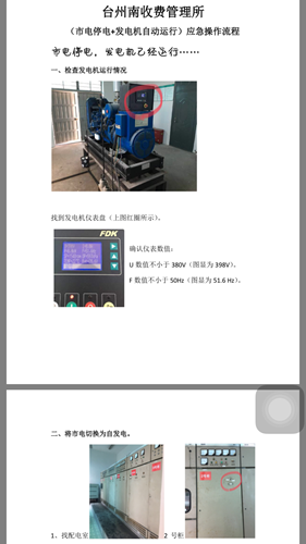“當(dāng)市電斷開(kāi),聽(tīng)到發(fā)電機(jī)響起時(shí),只需用扳手把切換銷控切換到自發(fā)電,然后按一下各區(qū)域的用電開(kāi)關(guān)即可,喏,就這幾個(gè)關(guān)鍵開(kāi)關(guān)……” 近日,臺(tái)州南收費(fèi)所的兼職電工金小斌在配電房耐心對(duì)前來(lái)學(xué)習(xí)自發(fā)電操作的員工作現(xiàn)場(chǎng)講解,“另外,操作過(guò)程中要有安全意識(shí),碰到異常情況停止操作。”