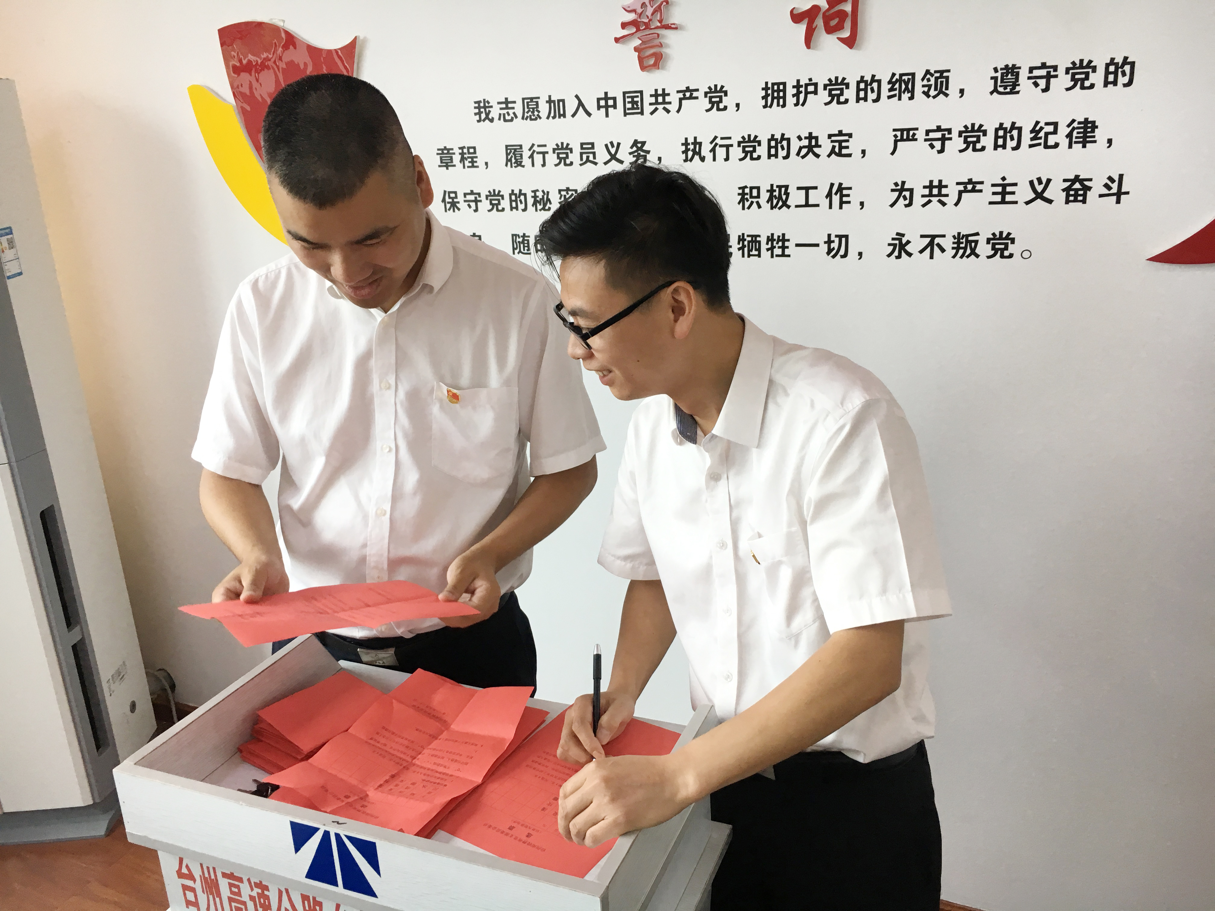 臺州南收費(fèi)所黨支部完成換屆選舉工作 5月31日上午,臺州南收費(fèi)所黨支部召開支部大會,進(jìn)行換屆選舉工作。會議應(yīng)到共產(chǎn)黨員16人,實到15人,符合相關(guān)規(guī)定,會議有效。