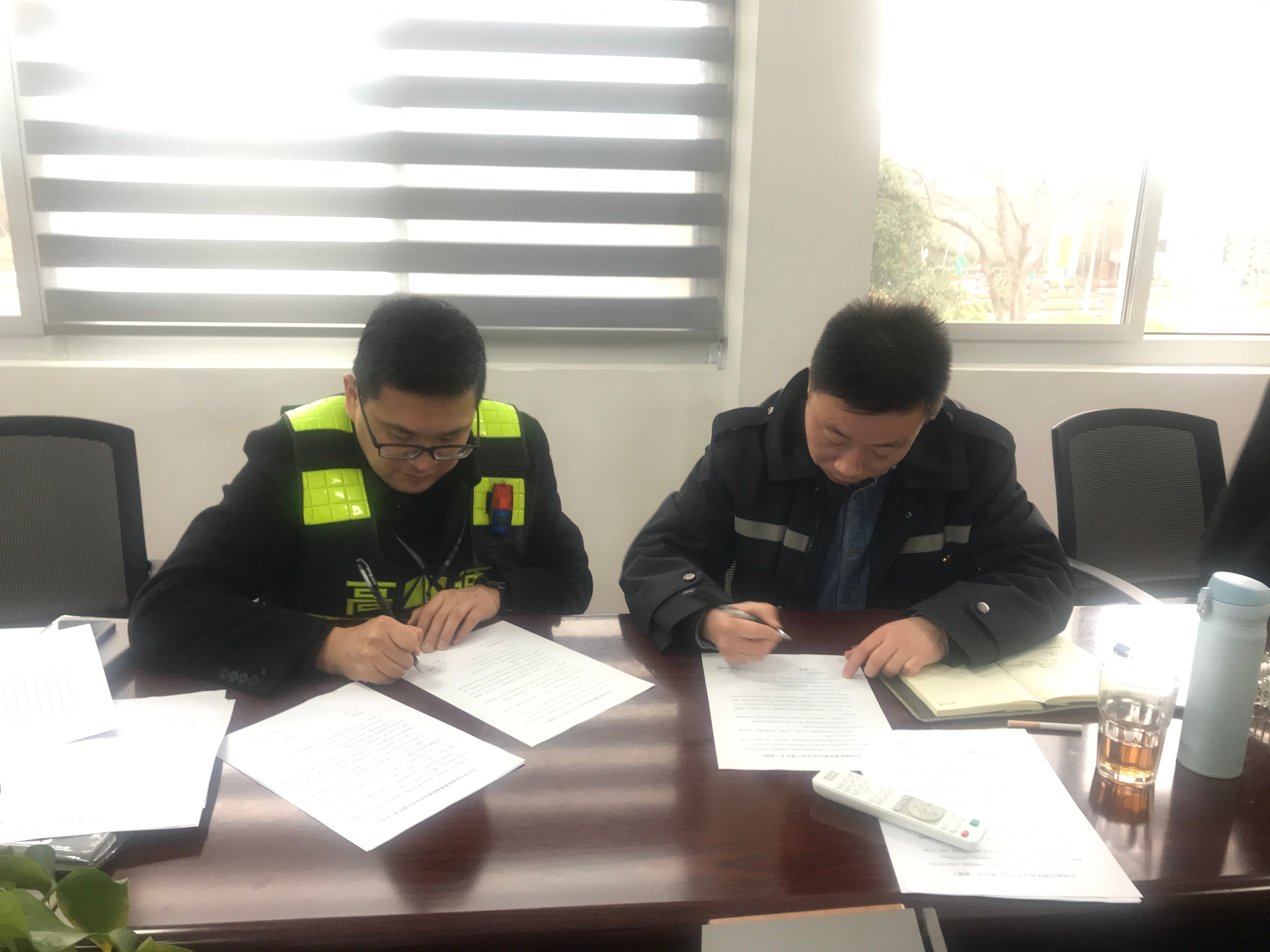 (圖為所長與班長簽訂春運安全生產責任書 )