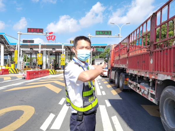 “師傅,慢點(diǎn),注意后方來(lái)車,往左一點(diǎn)。”溫嶺西收費(fèi)站入口處,一位身高一米七五左右的男同志正在維護(hù)著交通秩序。他就是征費(fèi)三班班長(zhǎng)李寧。酷暑高溫?zé)o法消磨他的斗志,揮汗如雨對(duì)他而言已是家常便飯。溫嶺西收費(fèi)站車流量大,貨車多,當(dāng)遇到三超車輛或者節(jié)假日的時(shí)候,入口處就會(huì)排成長(zhǎng)龍。七八月份的太陽(yáng)十分毒辣,經(jīng)過(guò)一天的高溫,收費(fèi)站入口的馬路上熱浪滾滾,人站在外面不到5分鐘就會(huì)汗流浹背。但為保持入口交通的安全暢通,李寧不斷做著各種不同的手勢(shì),指揮著過(guò)往的車輛通行,絲毫顧不得擦拭順著臉頰流下來(lái)的汗水。他就是臺(tái)州高速上的最美堅(jiān)守者。