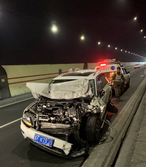 圖為事故現(xiàn)場 在很短的時間內(nèi),巡邏車就趕到現(xiàn)場。此時塘嶺隧道事故現(xiàn)場一片混亂,眾多車輛滯留。執(zhí)勤隊(duì)到達(dá)現(xiàn)場做好預(yù)警措施后,執(zhí)勤隊(duì)員勸離兩輛事故車駛往塘嶺隧道南廣場等候交警處理,引導(dǎo)擁堵車輛有序通行。巡邏車尾隨事故車輛,做好預(yù)警工作,緩慢駛向寧向隧道口。然而當(dāng)巡邏車行至寧向出口處,又有兩車發(fā)生追尾,被追尾車輛已是“體無完膚”,現(xiàn)場有大量的拋灑物,嚴(yán)重影響其他車輛通行,需拖車和清障車的救援,清障施救車輛也及時趕到,現(xiàn)場才恢復(fù)正常通車,此時距離第一起事故發(fā)生僅僅過去半個小時。 在此,臺州高速集團(tuán)溫馨提醒,雖然大家歸家心切,但是春運(yùn)期間高速車流量大,車速快,行車過程中盡量保持安全車距,避免人員傷亡和財(cái)產(chǎn)損失。 陳旦平