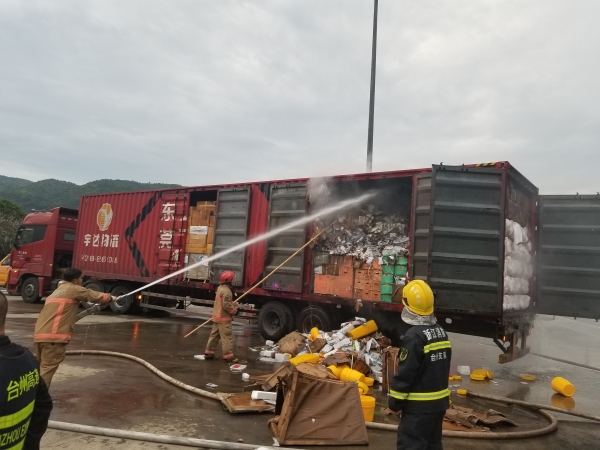 據悉,這場事故源于“后輪輪胎起火”,當時司機用水來滅火,火卻越燒越大,幸虧執勤隊和溫州高速交警及時救援,火勢才得到有效控制。