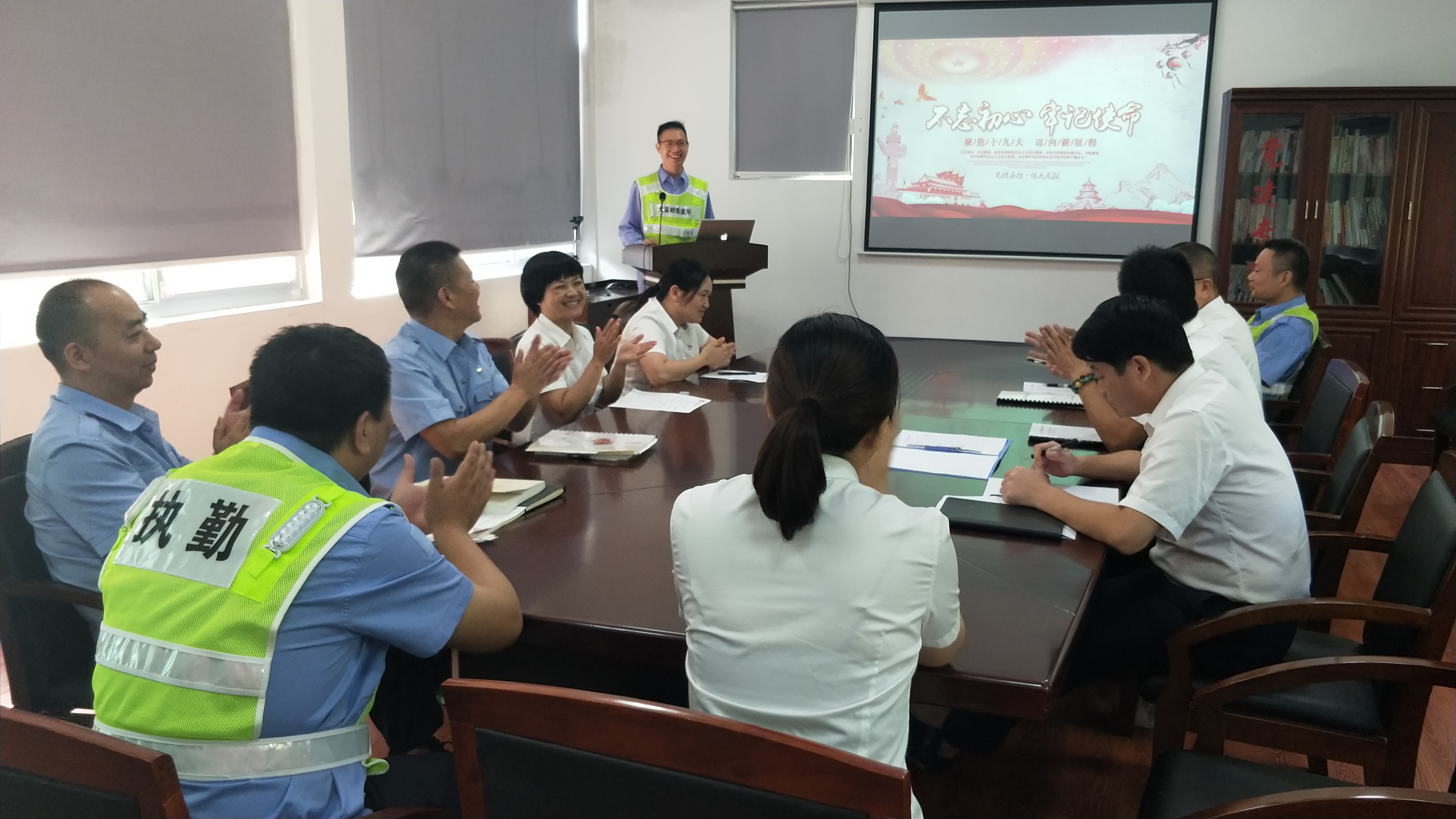 圖為演講賽現(xiàn)場 此次演講由隧道所黨員、執(zhí)勤隊業(yè)務(wù)骨干參加,演講比賽過程中,參賽的七位選手緊緊圍繞“不忘初心,牢記使命”這一主題,結(jié)合各自的本職工作,立足崗位實際,從不同角度、不同層面,說身邊的人、講身邊的事。有執(zhí)勤隊長對隧道安全責(zé)任的解讀,機(jī)電人員對隧道設(shè)備維護(hù)的擔(dān)當(dāng),中控員對隧道24小時堅守的承諾,安保人員對隧道消防安全的認(rèn)知,還有行政人員對奉獻(xiàn)的感慨,演講者們談感想、抒情懷、表決心,為大家分享了各自對初心和使命的認(rèn)識,從內(nèi)心抒發(fā)了對中國共產(chǎn)黨、偉大祖國無限敬意和熱愛之情。他們用包含深情,富有感染力的演繹,使全場觀眾深深地感受到他們強(qiáng)烈的愛國熱情。
