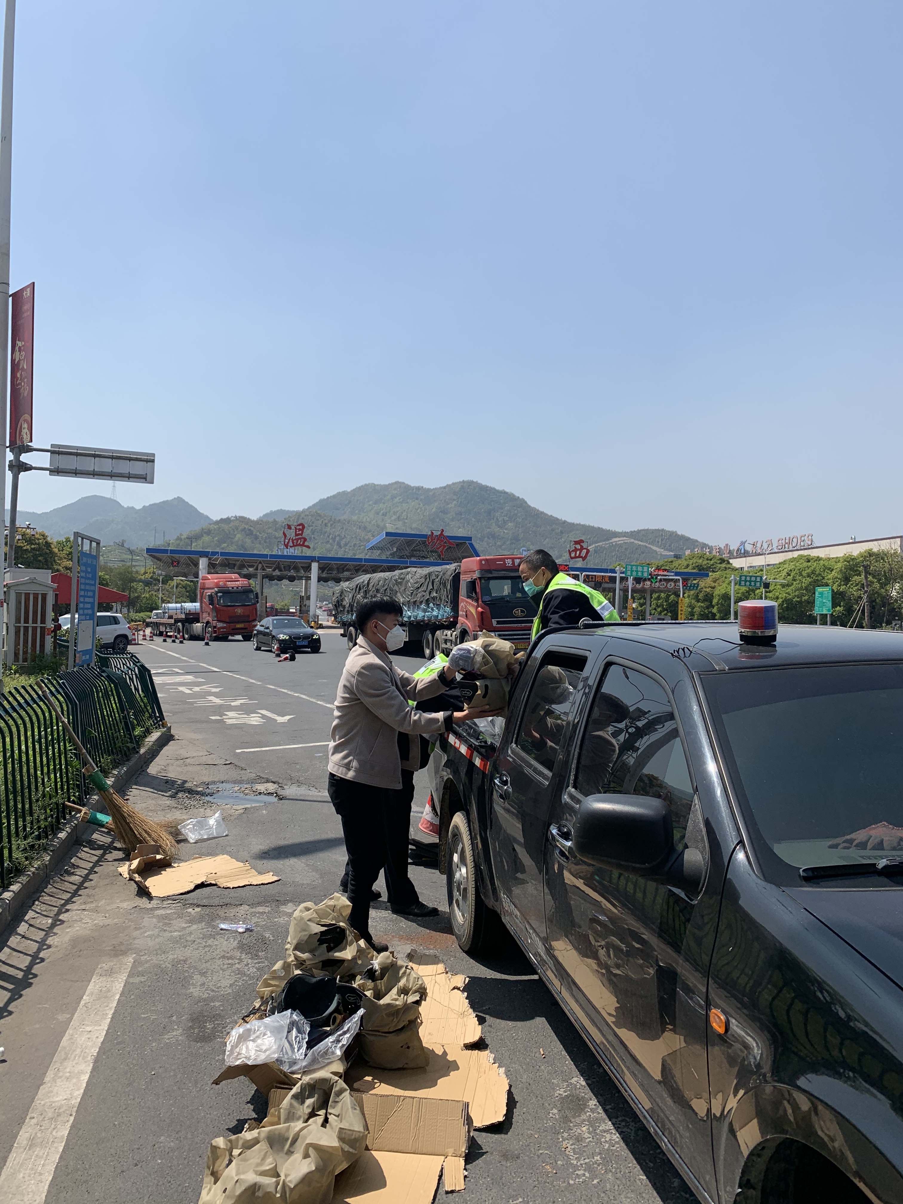 執(zhí)勤隊快速清除高速掉落物,貨歸原主 4月8日中午1點左右,大溪嶺隧道所中控室接到報警:“大溪嶺寧向隧道有大量貨物掉落,嚴重影響車輛通行”。 執(zhí)勤隊得知貨物灑落的準確位置后立即驅(qū)車趕赴現(xiàn)場,地面散落著一些半成品的頭盔和其他一些零件,有的整箱貨物被撞散,零零落落灑一地,萬幸的是沒有對過往車輛造成二次事故。