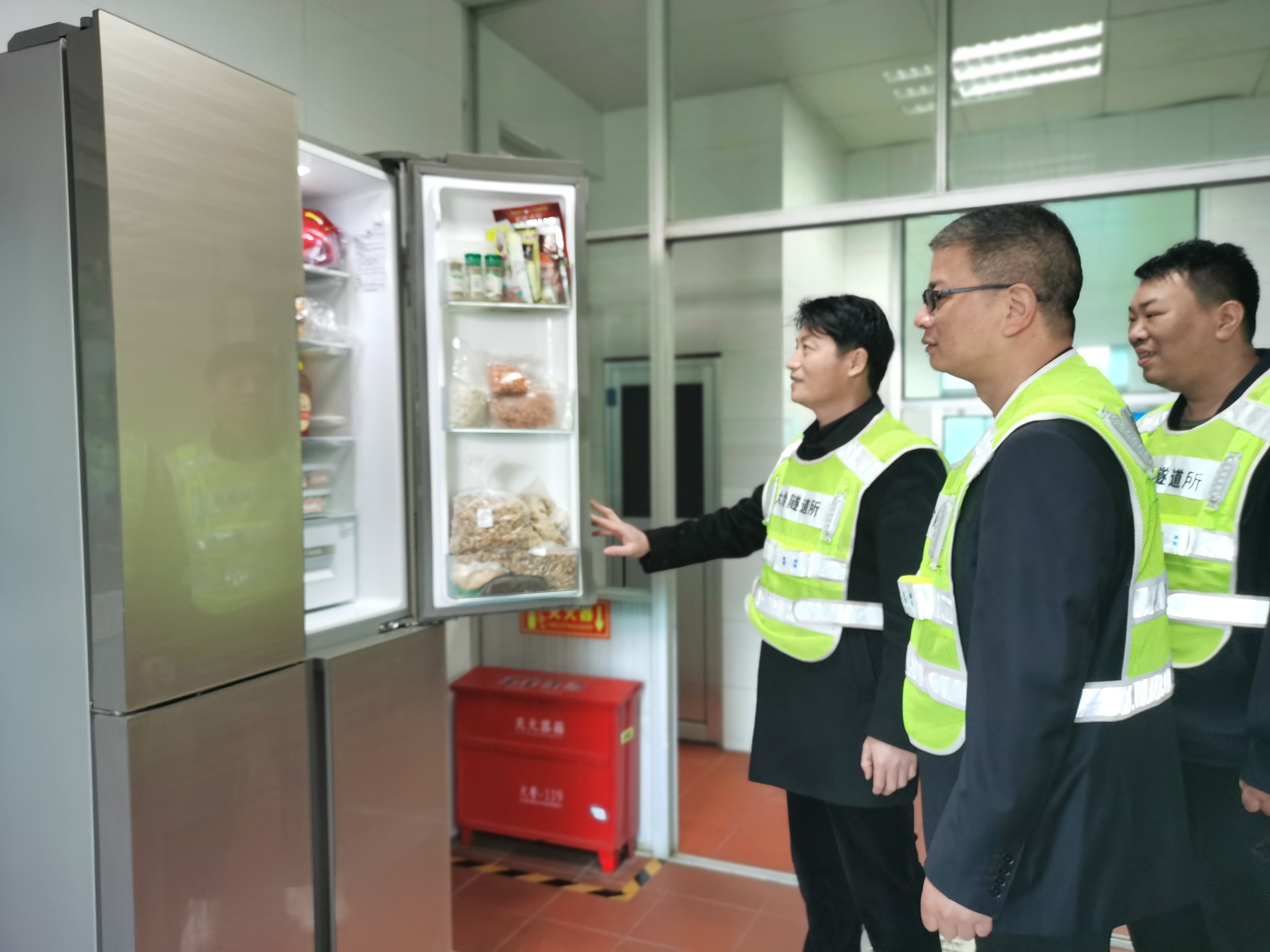 圖為檢查組在食堂檢查 此次節前安全大檢查活動能夠消除隧道安全隱患,為節日期間高速隧道的安全暢通也提供了有效保障。 陳智慧