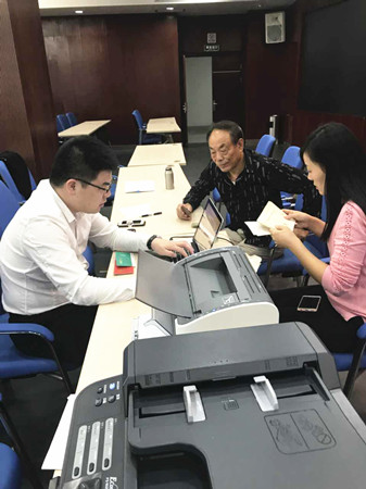 戴著一副黑框眼鏡,憨實(shí)魁梧的身形,說(shuō)話輕言慢語(yǔ)。據(jù)說(shuō),某天下班后,還坐在椅子上打電話,一臉溫柔,竊竊私語(yǔ),同事一直以為他在談戀愛(ài),這打完了電話,才知道是接到股東的電話了,跟對(duì)方在解釋股權(quán)收購(gòu)政策呢。 在股權(quán)流動(dòng)收購(gòu)點(diǎn),小李是電腦操作人員,所以也不大參與解說(shuō)工作。只是那天正好一位阿婆坐在了電腦對(duì)面,說(shuō)話之間才知大字不識(shí),是聽(tīng)鄰居說(shuō)的,就自己摸到這里了。正好手里也空了,李騰飛頓頓身子,放松下來(lái),以黃巖特有的吳言儂語(yǔ)跟阿婆解釋了十幾分鐘,果然,白凈的臉上是一臉的和氣,沉穩(wěn)又實(shí)在,確實(shí)是傳說(shuō)中的暖男一枚呀。末了,幫阿婆代簽了字,讓阿婆按了手指印。 但是,在工作的時(shí)候,小李讓我們見(jiàn)識(shí)到了“騰飛”的效果。流動(dòng)點(diǎn)只設(shè)一臺(tái)筆記本電腦,線上操作都?xì)w他,在大溪鎮(zhèn)政府,來(lái)的股東有百十號(hào),流動(dòng)小組包括駕駛員何杰靚迅速開(kāi)展了流水作業(yè)。此時(shí)此刻,小李那一雙肥白的大手在小巧的鍵盤(pán)上十指翻飛,靈活敏捷,操作如行云流水,打印機(jī)刷刷地響,不停飛出一份份協(xié)議,傳到下一個(gè)工作人員這里。這才知道,每一個(gè)人的名字都是名副其實(shí)的,“騰飛”的含義是在這里體現(xiàn)的呀。 鄭蔚