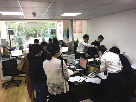圖為椒江收購點陸陸續續有股東前來辦理轉讓手續