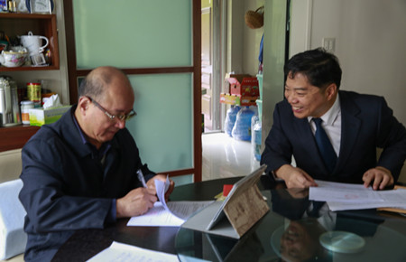 11月14日上午,集團總經(jīng)理助理項同富繼續(xù)上門服務(wù),為離退休老干部胡宣義夫婦辦理股權(quán)轉(zhuǎn)讓手續(xù)。