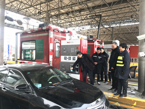 圖為公司總經理張建平給過往司乘人員發(fā)卡