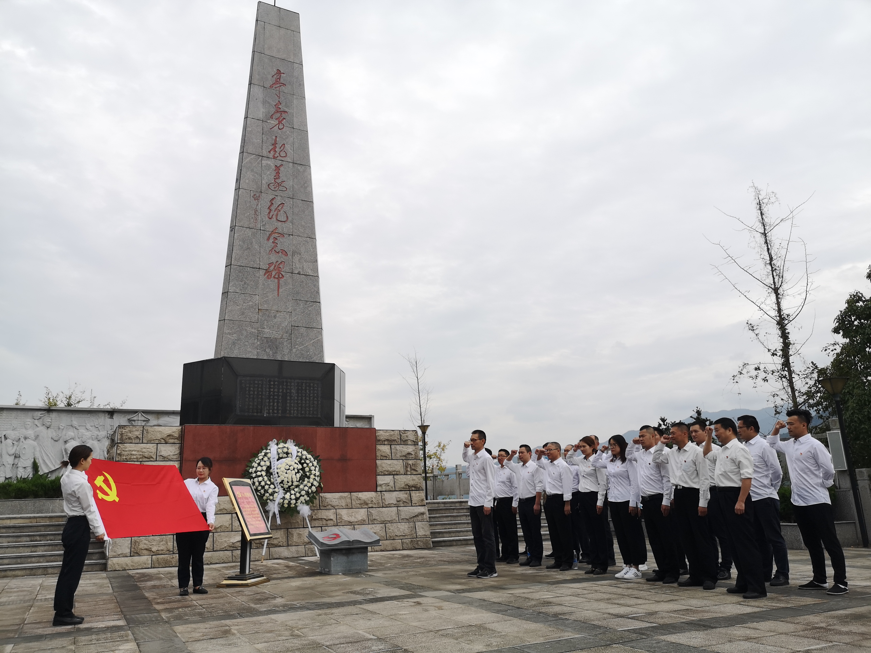 (圖為紀(jì)念碑黨員合影) 亭旁起義打響了浙東武裝奪取政權(quán)的第一槍,建立了浙江第一個(gè)蘇維埃政權(quán),被譽(yù)為“浙江紅旗第一飄”。 黨員同志們沿著先烈們的足跡,接受著紅色精神的洗禮。在亭旁起義紀(jì)念碑下,同志們重溫入黨誓詞;在紀(jì)念館,聆聽亭旁起義的歷史;在城隍廟,感受紅色區(qū)域的家國(guó)情懷……黨員們紛紛表示,一定會(huì)銘記歷史、繼承傳統(tǒng)。