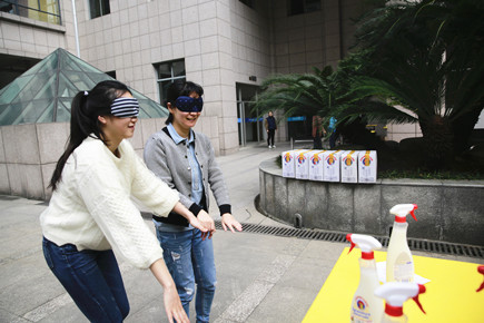 圖為職工在參加蒙眼取物項目