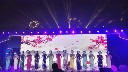 圖為旗袍秀現(xiàn)場 晚會一開場,由椒江區(qū)前所街道前所村(全國文明村)表演的鑼鼓舞《歡慶新時代》馬上將觀眾帶入到熱烈的氣氛中。隨后,各家單位選送的15個節(jié)目以小品、舞蹈等多種形式,展示學習貫徹落實十九大的成績,歌頌新時代黨領(lǐng)導下的新氣象。 公司員工包德福代表公司參加晚會,獨唱歌曲《天際》,其動聽的歌聲贏得了現(xiàn)場觀眾的陣陣掌聲和喝彩。 周茂森
