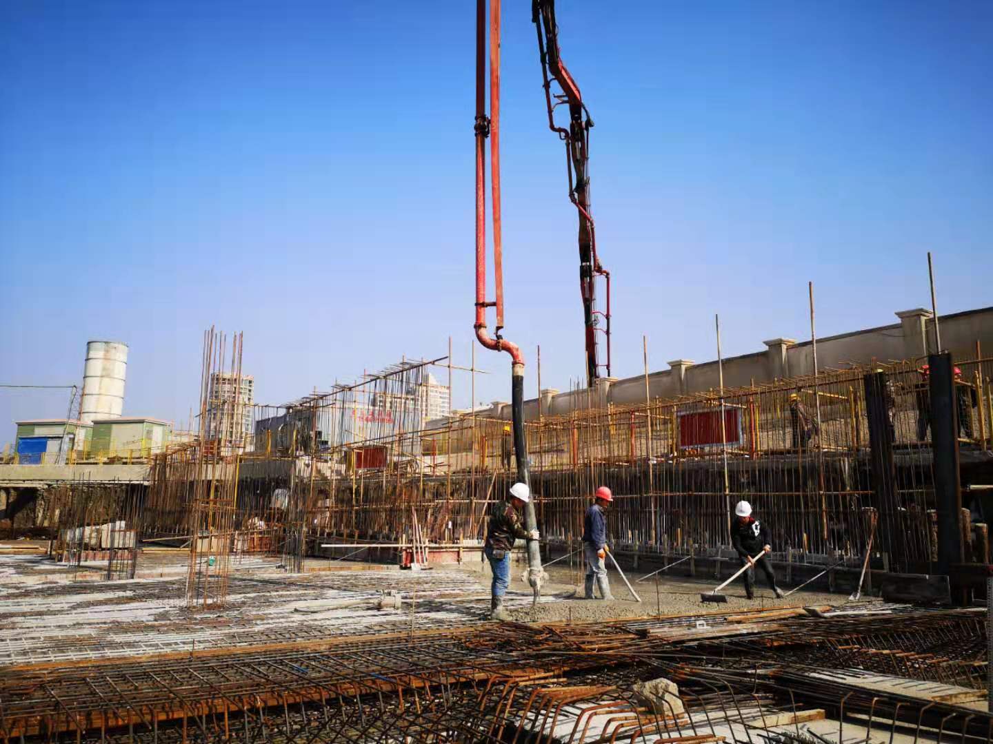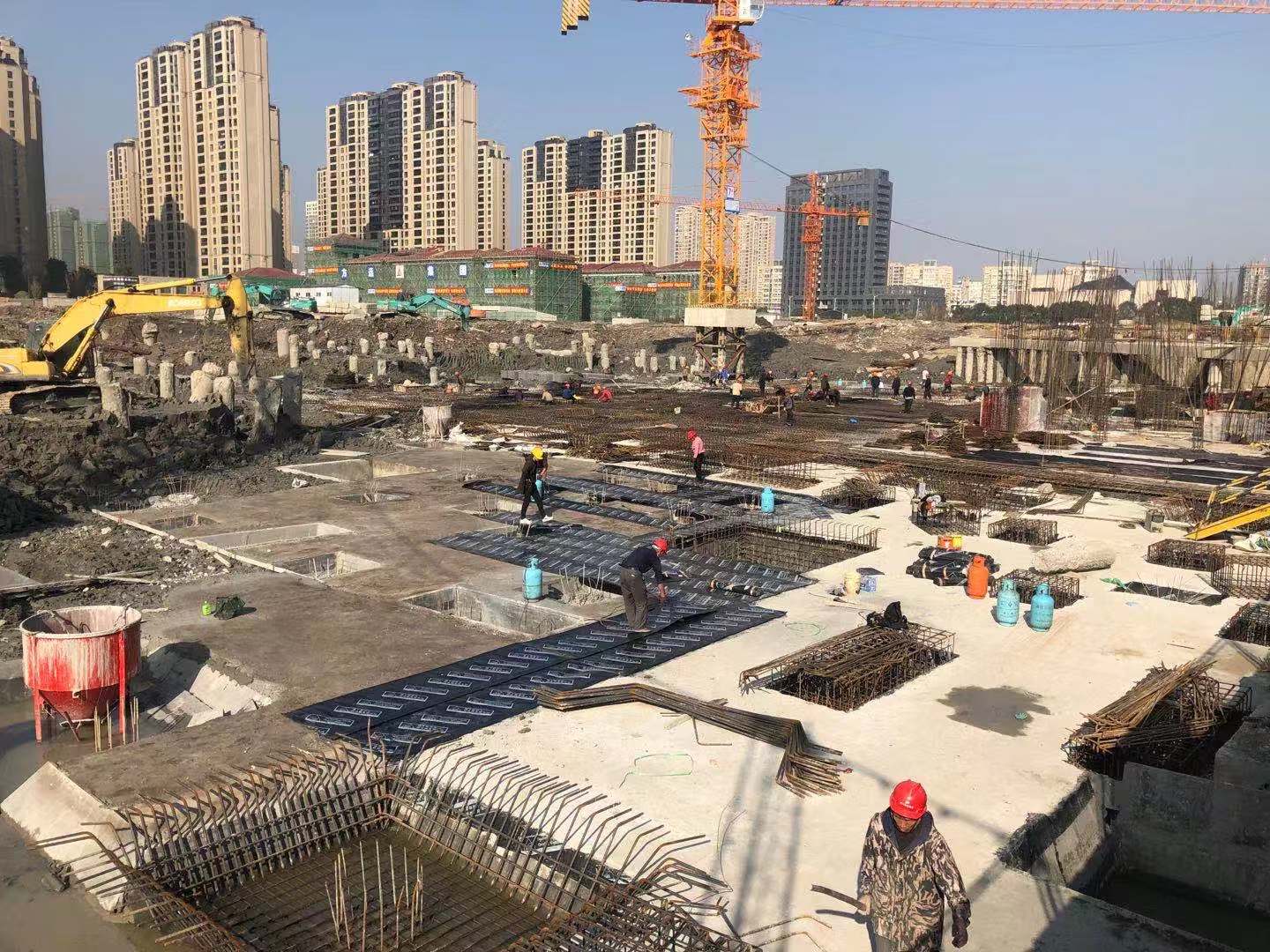 目前,施工正在全班上馬,早晚搶工,全速推進工程管理人員隨時在場監管質量與安全,項目建設節節攀升。1號、5號、9號、12號樓正在綁扎鋼筋,2號、6號和10號樓已進入底板墊層施工,計劃15日前完成中央庭院以東樓幢土方開挖,力爭春節前完成B區商品房地塊全部土方工程和基礎墊層,局部樓棟達到二層面。